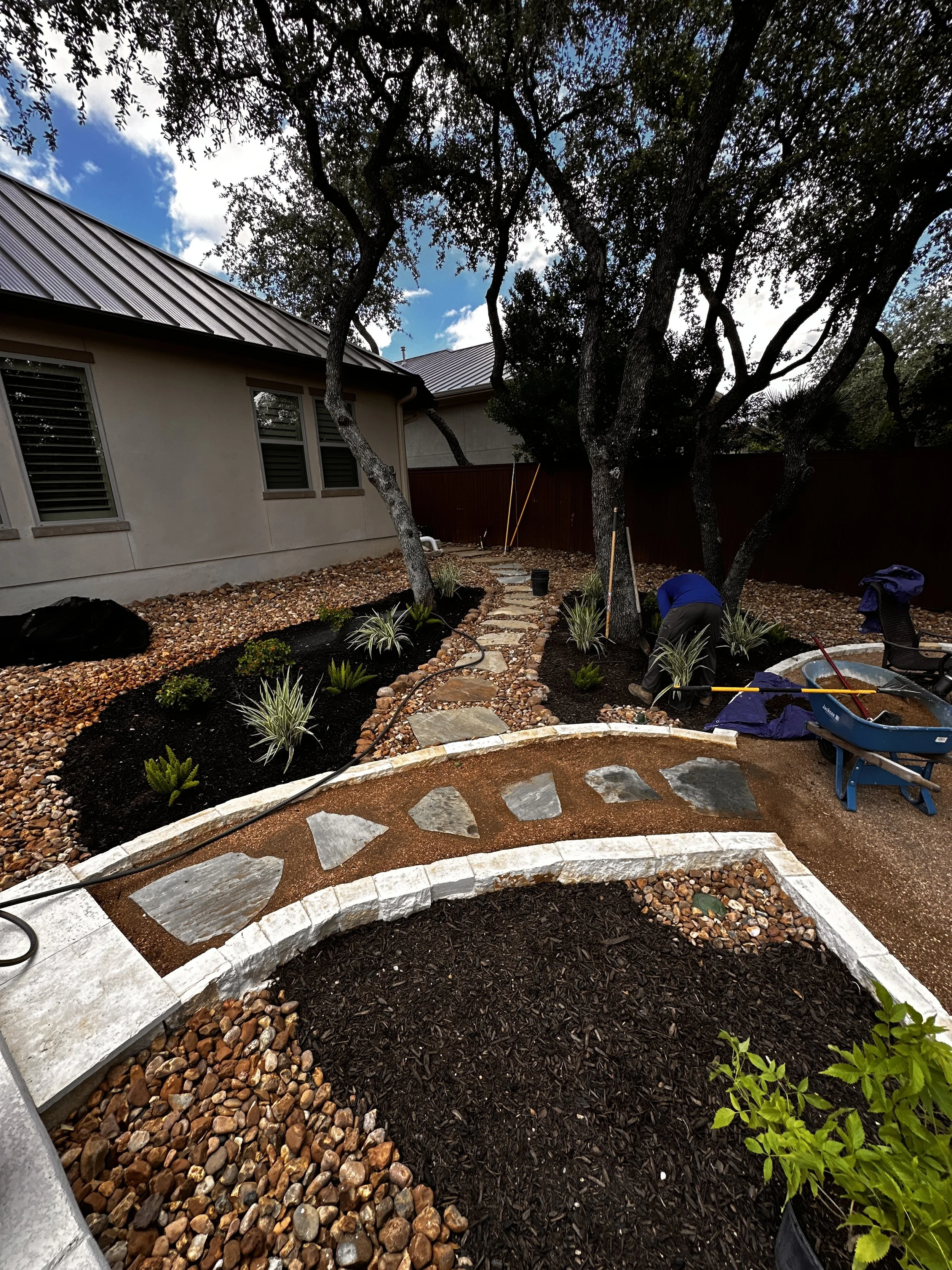 Our landscape design services cover everything from lush, colorful gardens to modern, low-maintenance yards. Whether you’re starting with a blank canvas or ready to completely transform your outdoor space, we create designs that fit your style, budget, and the Texas climate. We can incorporate xeriscaping, zeroscaping, and native plant landscapes for water-wise beauty, or plan full, green, traditional gardens for a vibrant look.